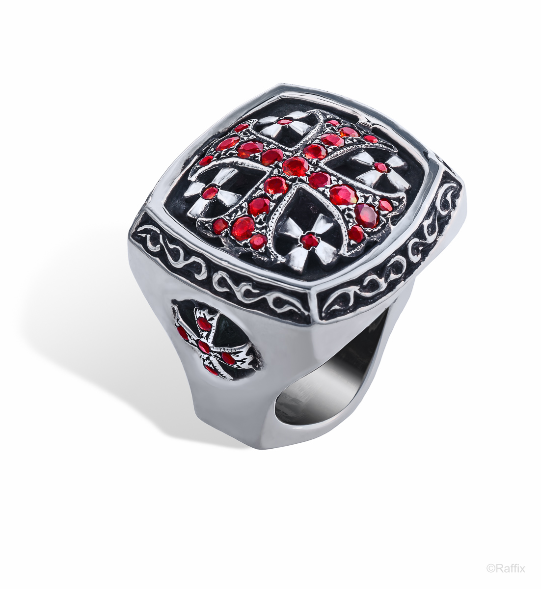 Solid Sterling Silver Cross Ring with 1.50ct Genuine Rubies