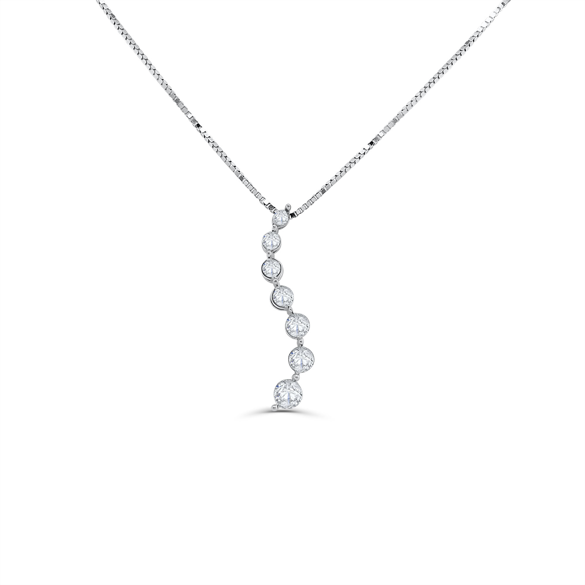 Diamond Journey Pendant crafted in 14 karat white gold and set with diamonds totaling 0.50 carats. 14K Yellow Gold Diamond Carat- 0.50ct Length of chain- 16in. Total Weight- 2.6g