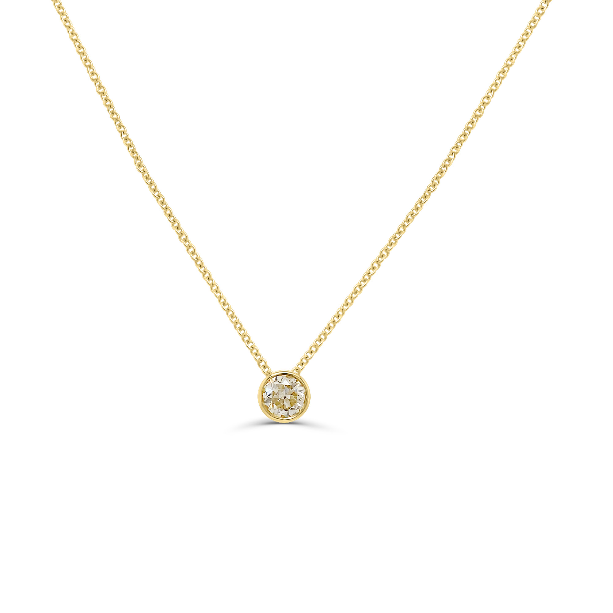 One Diamond Pendant crafted in 14k yellow gold set with one European cut diamond totaling 0.50ct