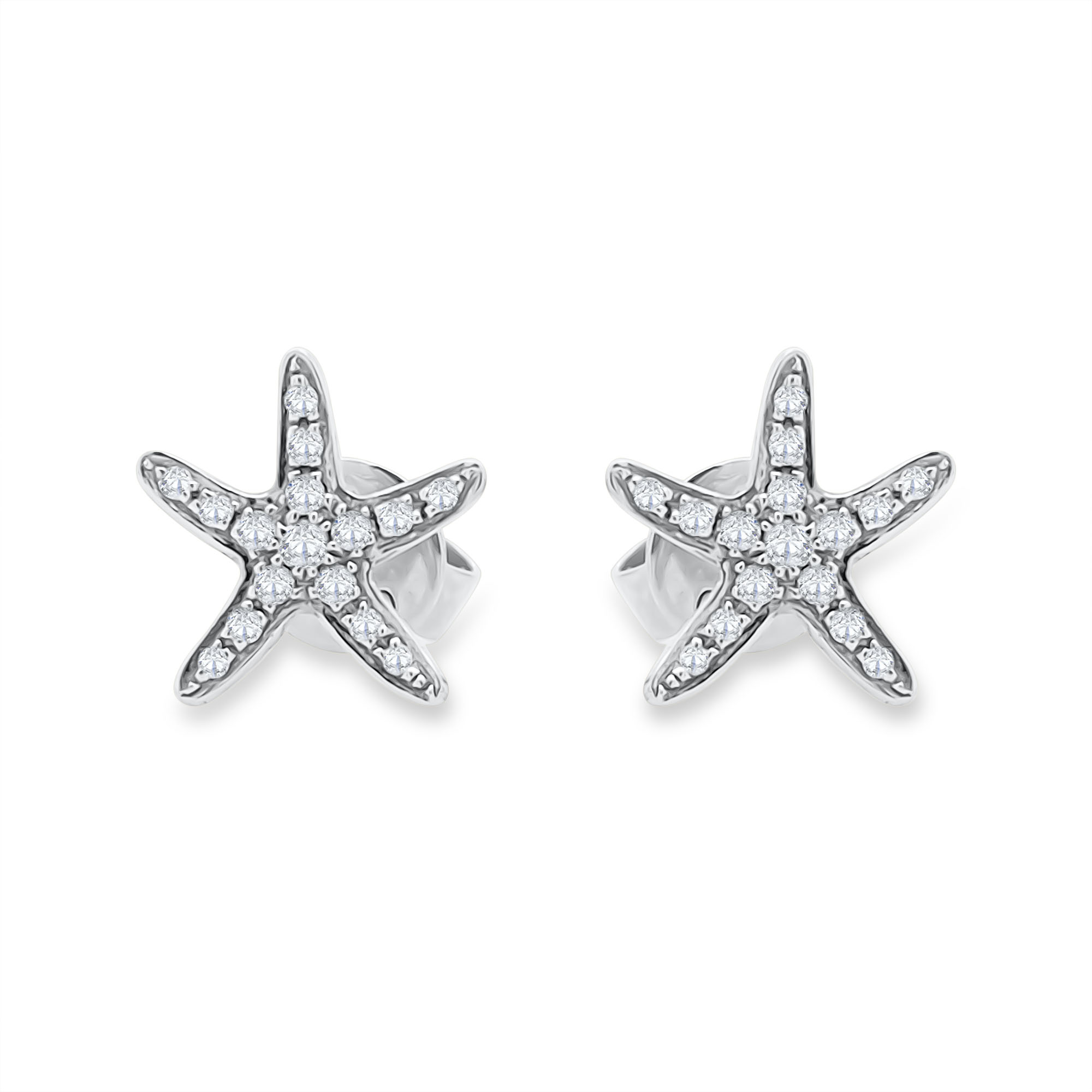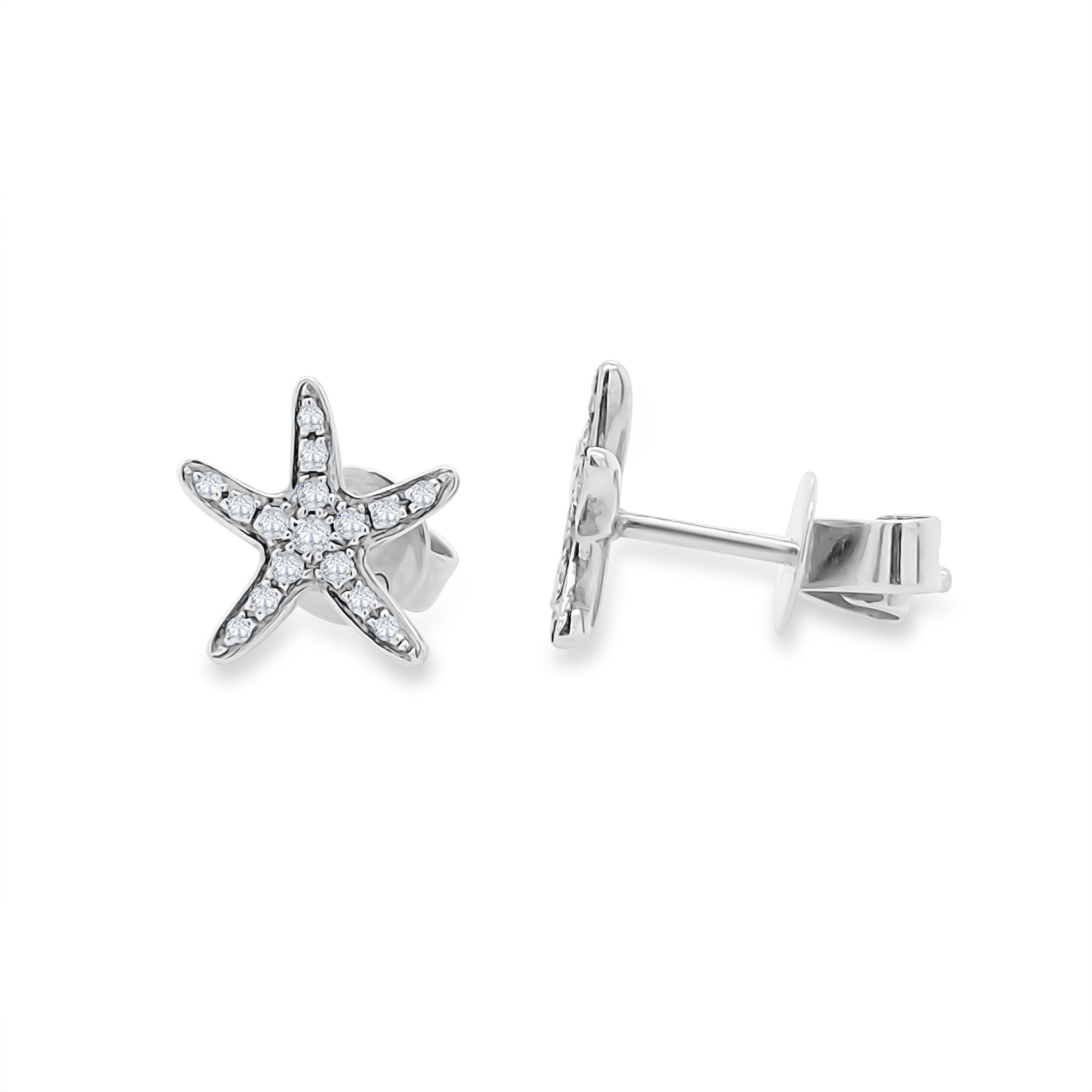 Diamond Starfish Stud Earrings crafted in 14 karat white gold set with diamonds totaling 0.15 carats.