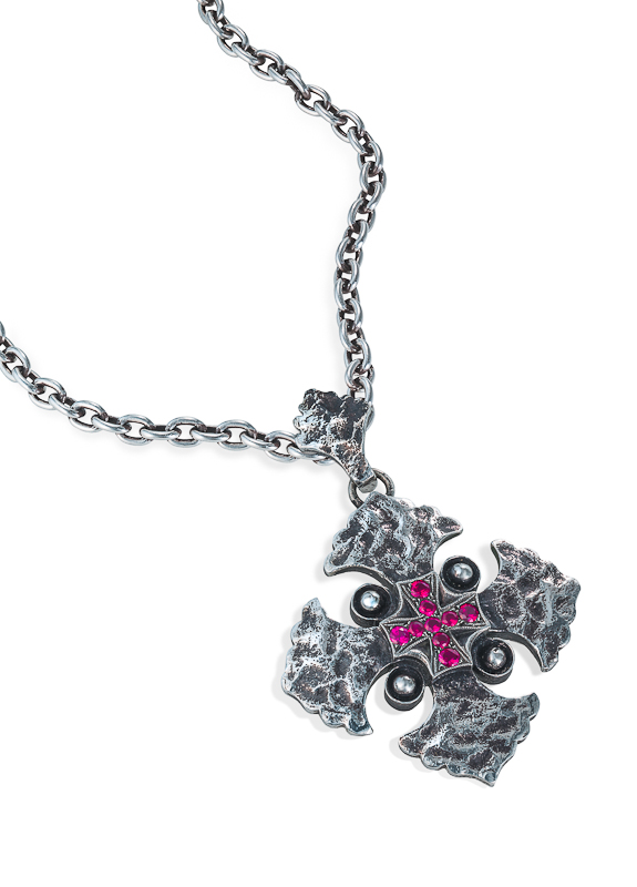 Solid sterling silver crosSolid sterling silver cross with 1.30ct genuine rubies