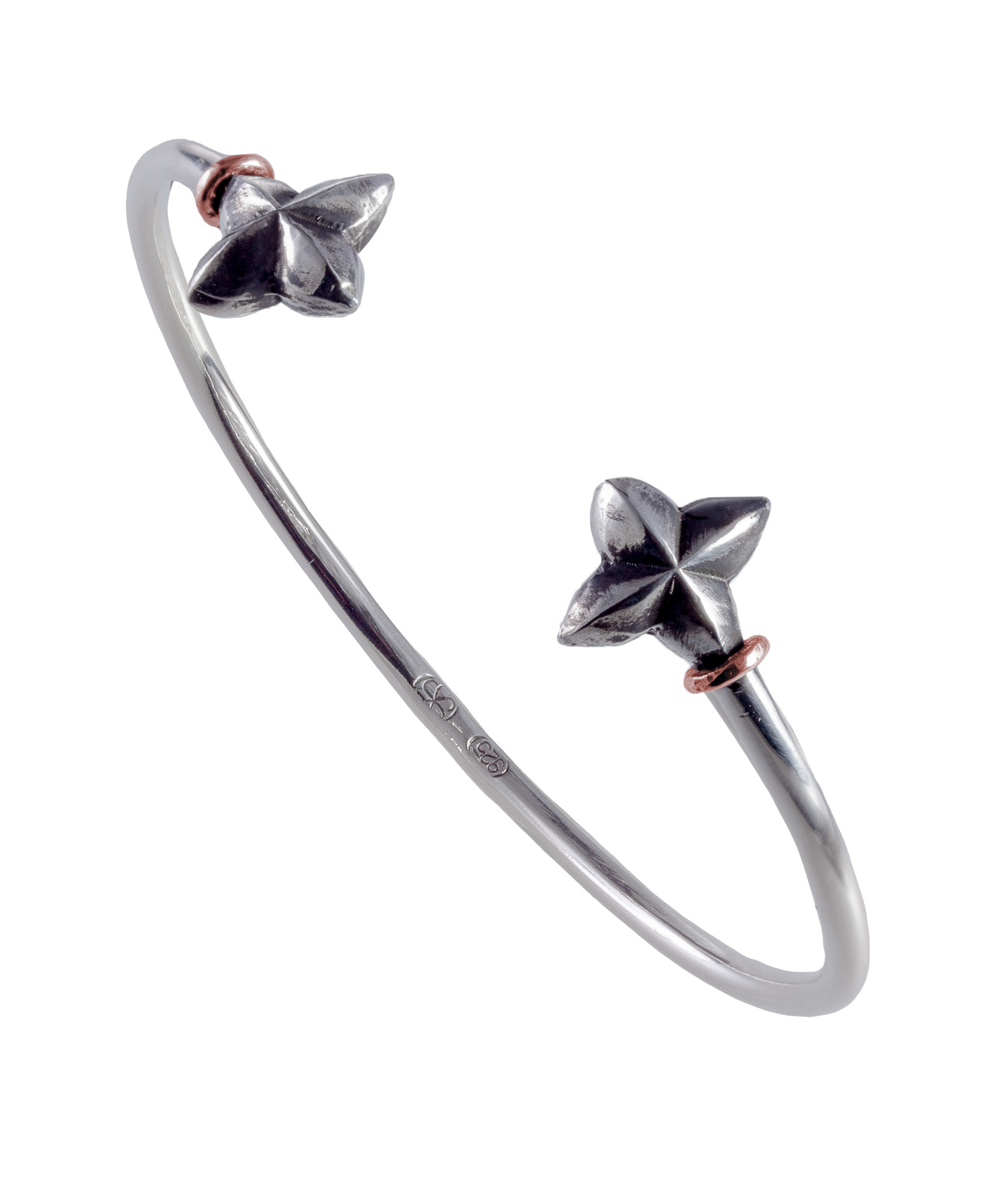 Solid sterling silver flower cuff bangle with 14kt rose gold rings