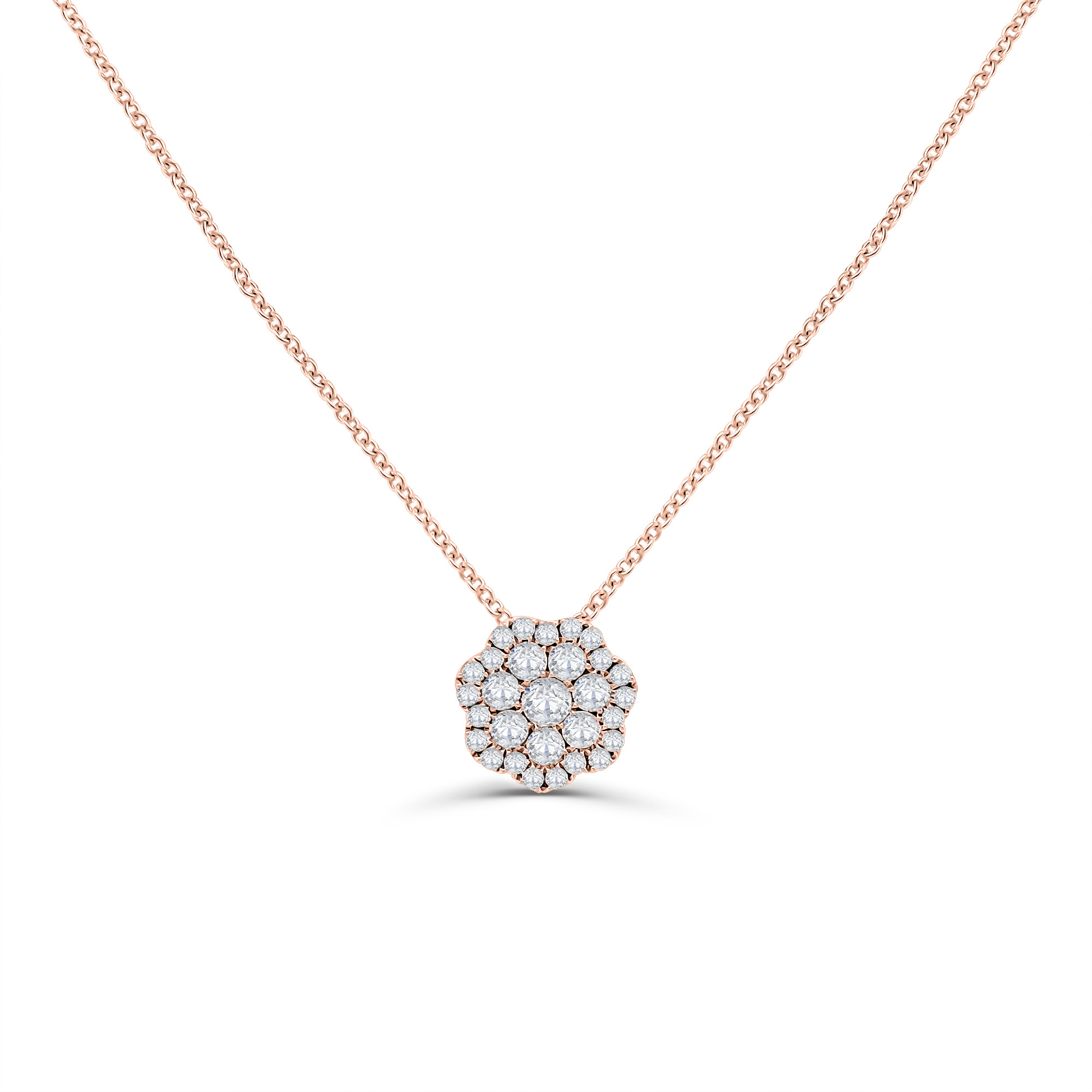 One Flower Pendant crafted in 14k rose gold set with diamonds totaling 0.51ct.