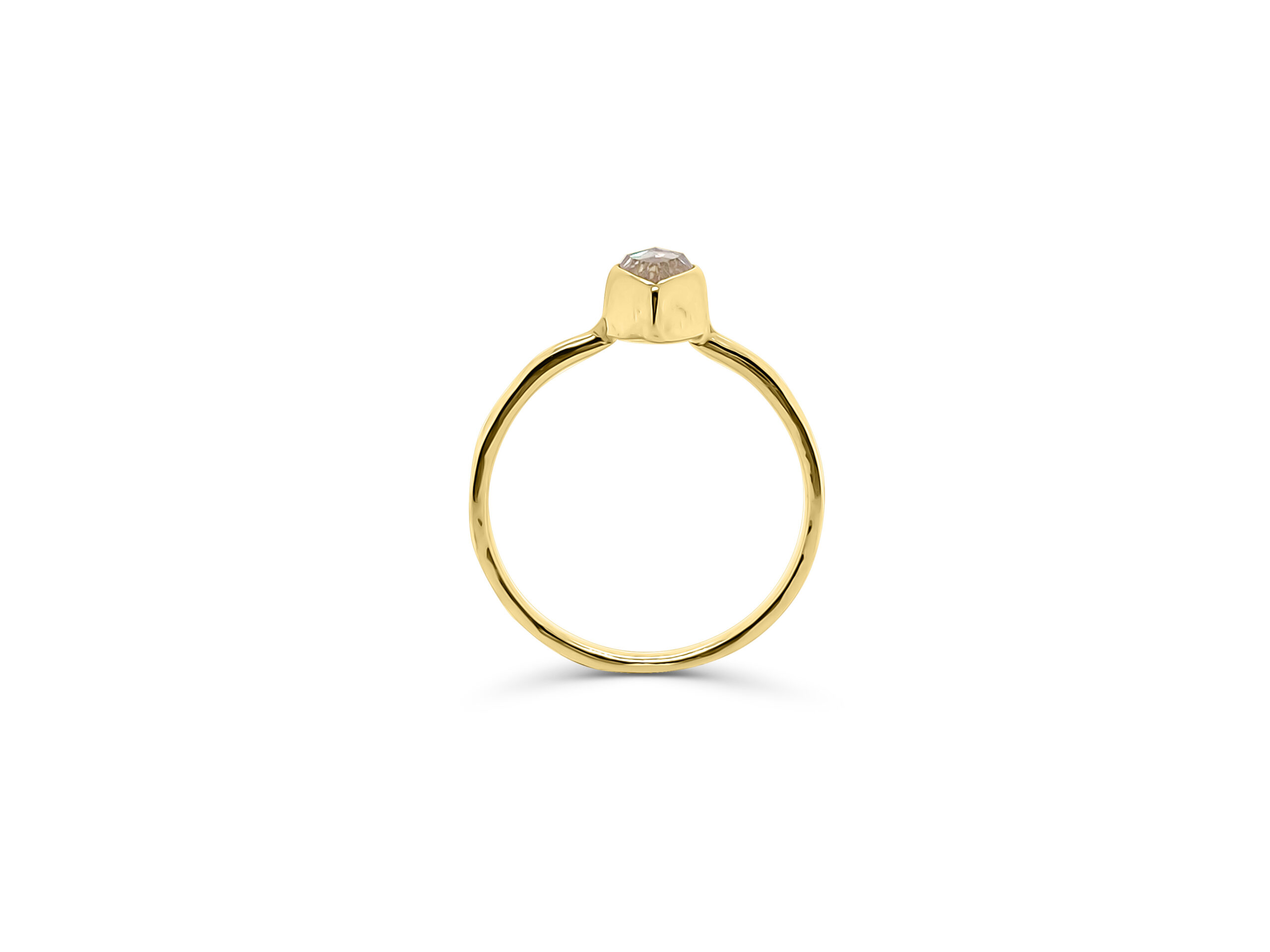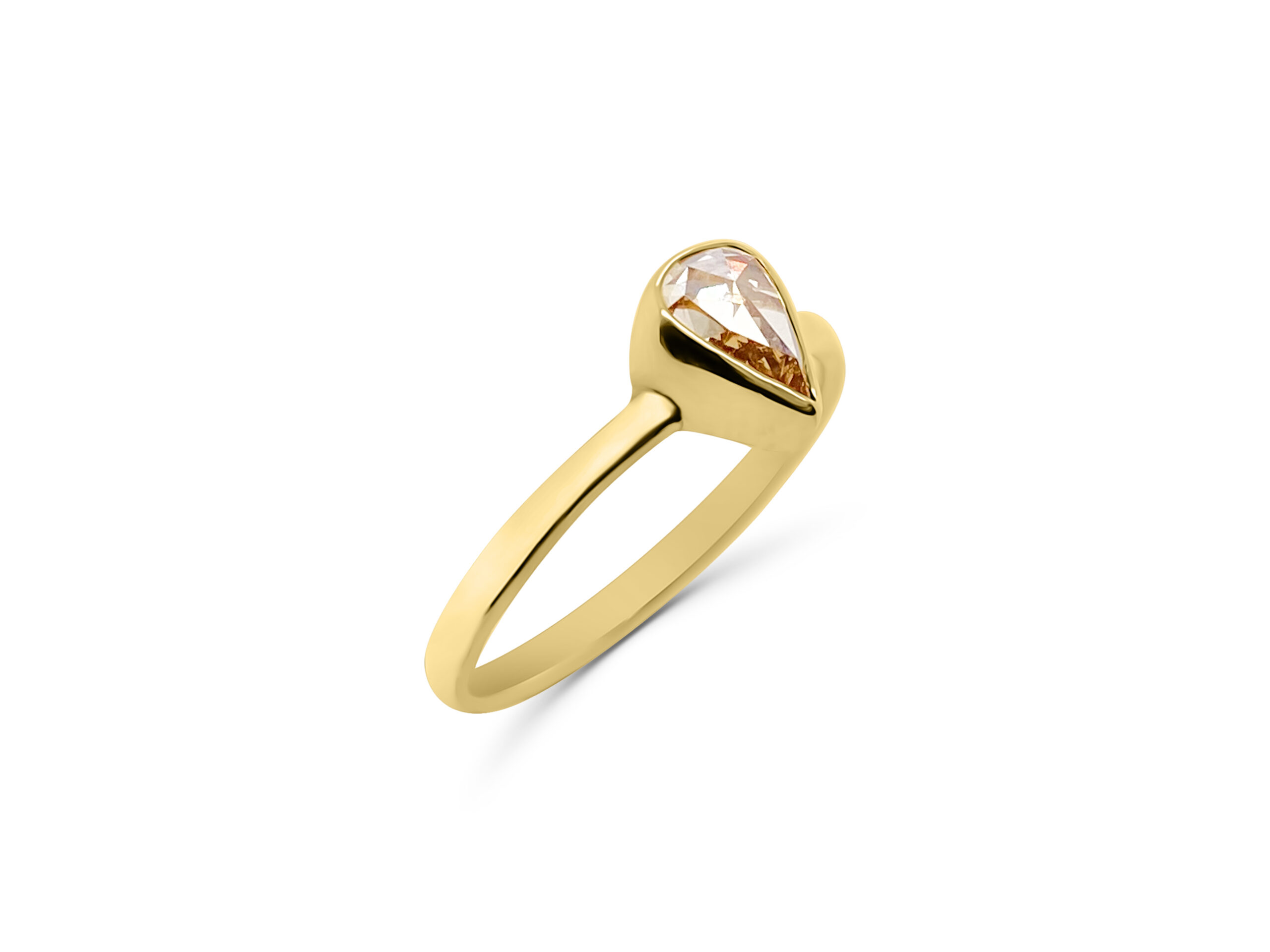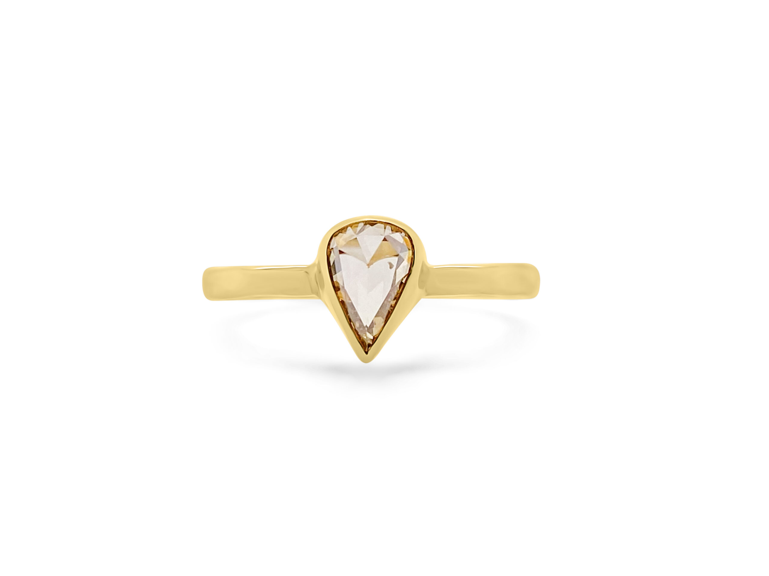 Modern Champagne Diamond Ring is crafted in 14 karat yellow gold set with a pear shaped rose cut diamond totaling 0.50 carats.