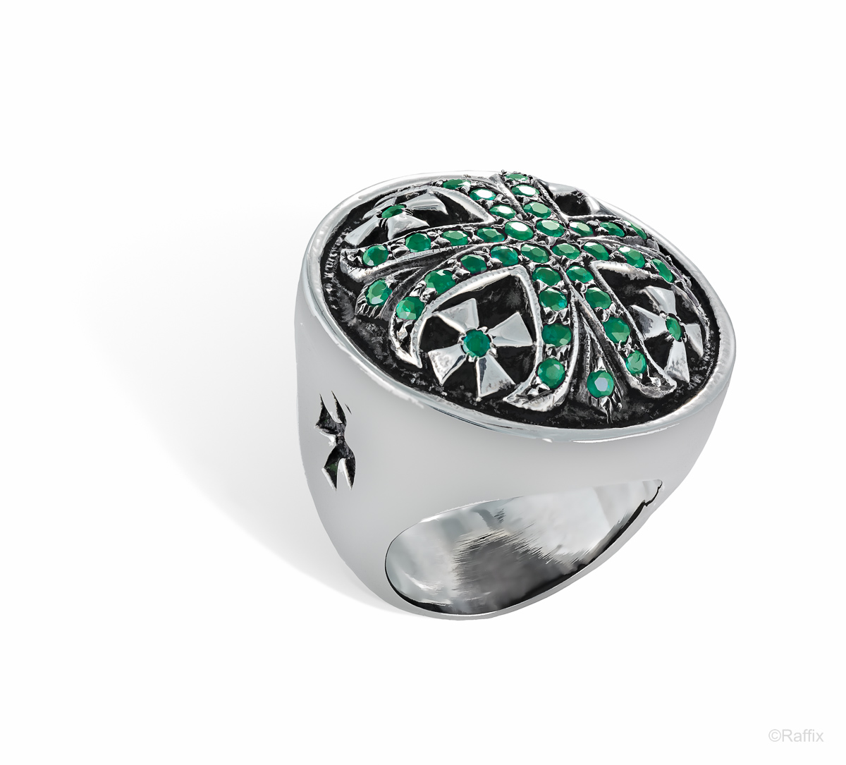 Solid Sterling Silver Cross Ring with 1.35ct Genuine Emeralds